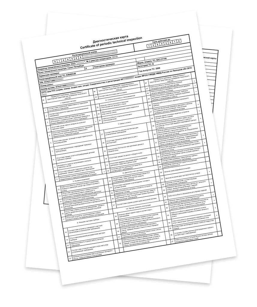 Автомобили, использующиеся для такси, для недопущения поломок и создания аварийных ситуаций должны периодически проходить техосмотр. Результаты диагностики двигателя, трансмиссии, ходовой части, рулевого управления, тормозов и других механизмов отображаются в диагностической карте. Она необходима при получении страхового полиса, страховой компенсации в случае аварии, а также без карточки автомеханик не проведет предрейсовый контроль техсостояния машины с отметкой в путевом листе. Диагностическая карта подтверждает пригодность автомобиля для безопасных пассажироперевозок.